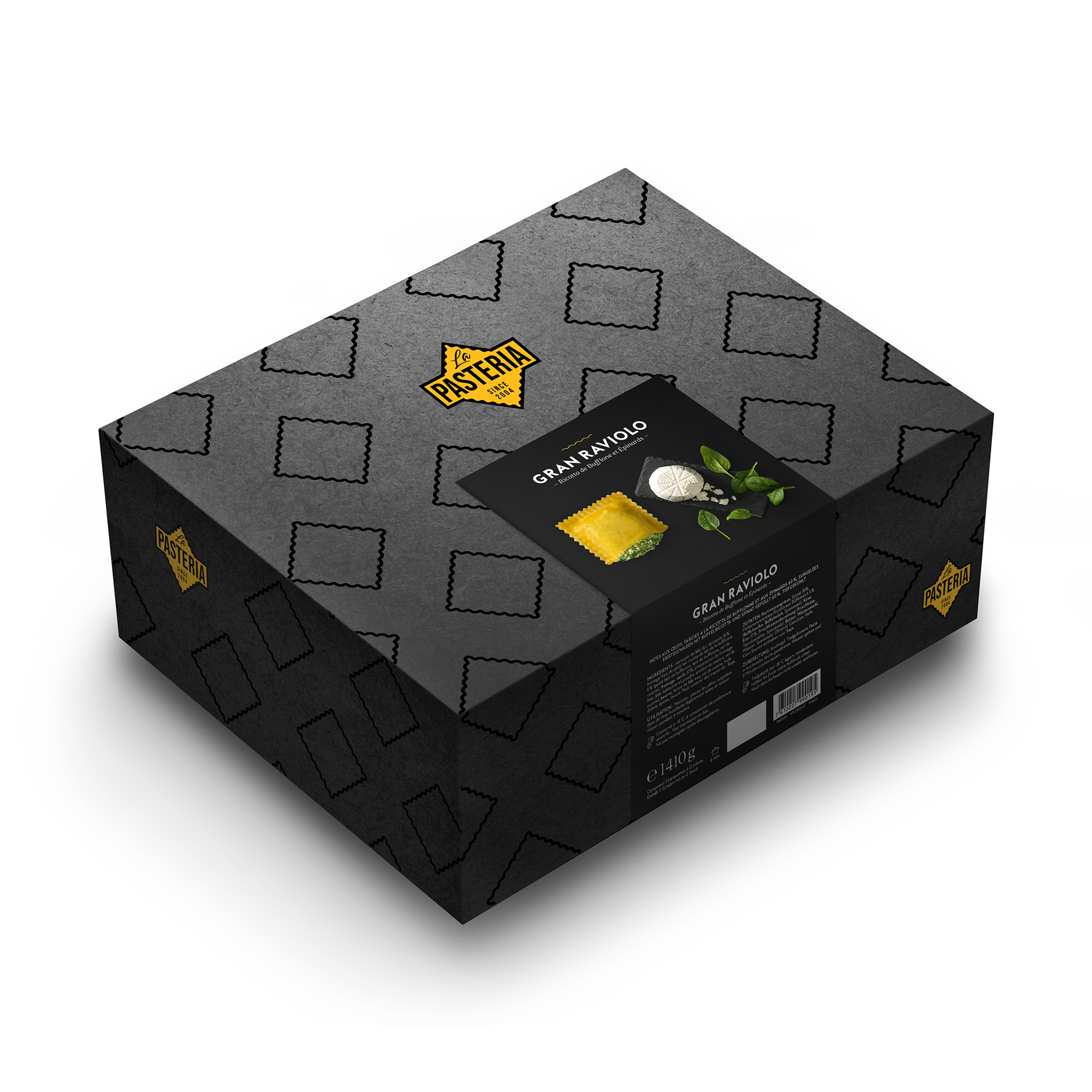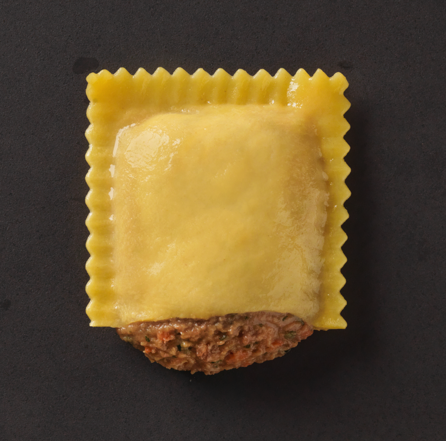 Die Pasta wird in der exklusiven Grossform „Gran Raviolo“ angeboten. Mit einer Füllung von 60 % und einem fein gearbeiteten 8-Eierteig aus Hartweizengriess und flüssigem Freilandei, überzeugt sie durch ihre warme Farbgebung, raue Oberfläche und al dente Textur. Jeder Biss vermittelt Authentizität und Qualität – ein Fundament für kreative Pasta-Kompositionen.
